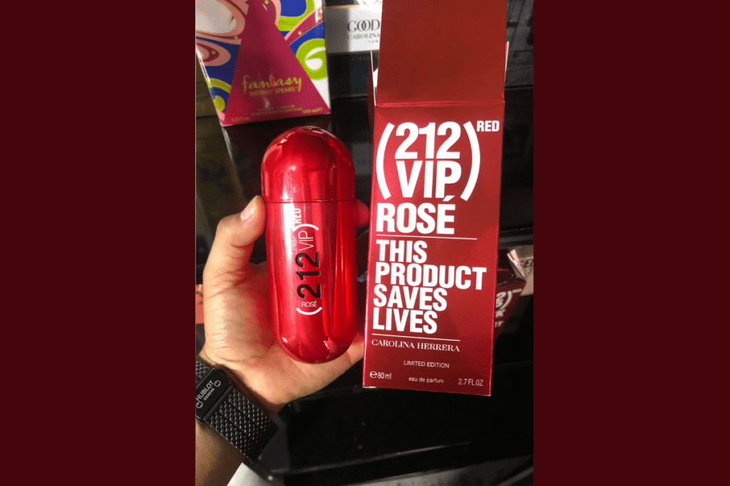 Con un fondo de haba tonka, pachulí y maderas, 212 VIP Rosé Red se vuelve cálido, sensual y duradero, perfecto para noches inolvidables.